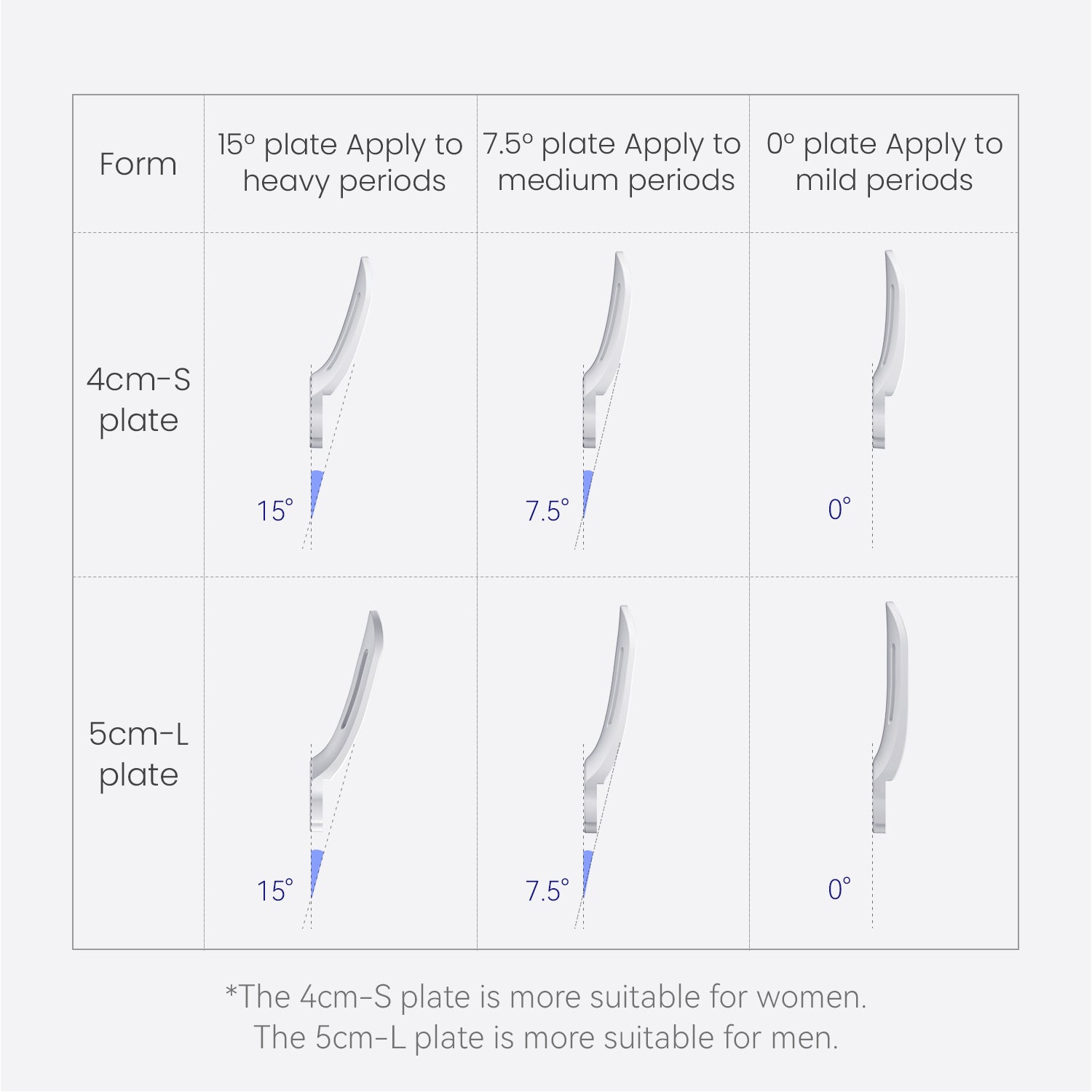 Choose based on bunion severity (15° for severe, 7.5° for moderate, 0° for mild) and toe length (4cm for shorter toes, 5cm for longer toes).