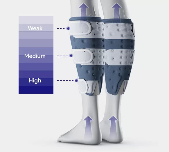 Traditional compression stockings are inconvenient to wear and the pressure decreases over time. Moreover, the cost of regularly replacing them is high, and the pressure level cannot be adjusted. To address these issues, we have developed a revolutionary smart air wave compression stocking.